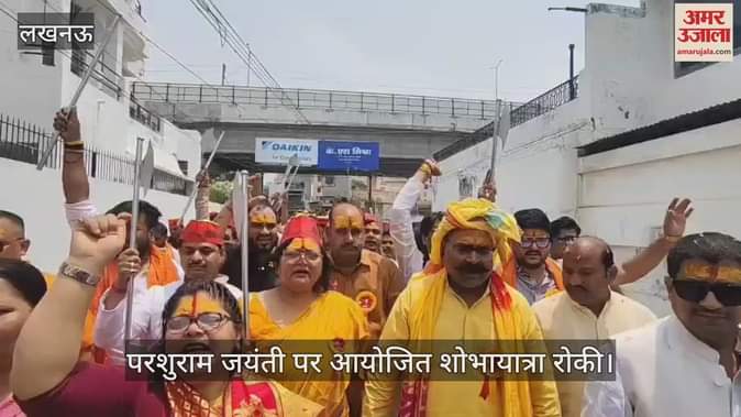 लखनऊ के इंदिरा नगर स्थित मुंशी पुलिया की मंगलम वाटिका में अखिल भारतीय ब्राह्मण सभा की ओर से परशुराम की जयंती पर आयोजित शोभायात्रा को पुलिस ने रोका तो सभा के लोग धरने पर बैठ गए और लंबा जाम लग गया।