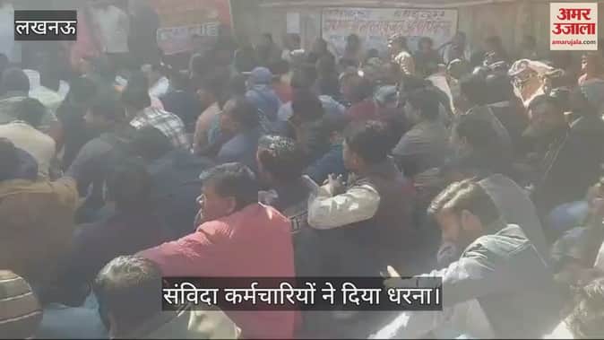 VIDEO : Lucknow: संविदा कर्मचारियों ने दिया धरना, रखी अपनी मांगें