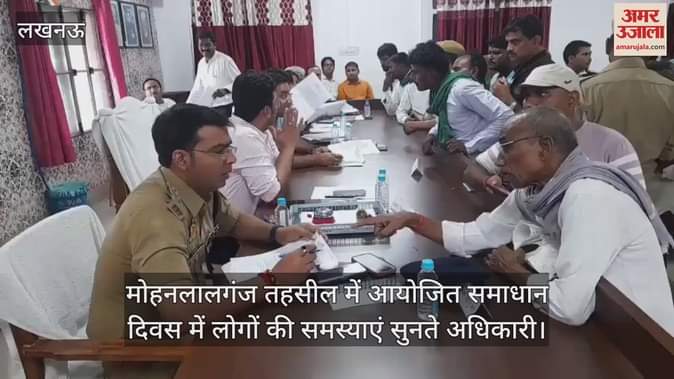 मोहनलालगंज तहसील में आयोजित समाधान दिवस में लोगों की समस्याएं सुनते अधिकारी