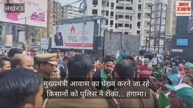 VIDEO : मुख्यमंत्री आवास का घेराव करने जा रहे किसानों को पुलिस ने रोका... हंगामा