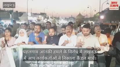 पहलगाम आतंकी हमले के विरोध में लखनऊ में आप कार्यकर्ताओं ने निकाला कैंडल मार्च