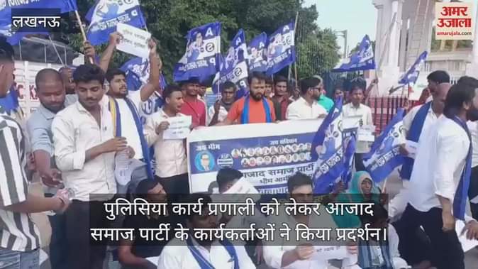 राजधानी लखनऊ में सोमवार को हजरतगंज चौराहे पर आजाद समाज पार्टी के कार्यकर्ताओं ने प्रदर्शन किया। उन्होंने पुलिस की कार्य प्रणाली पर सवाल खड़े करते हुए नारेबाजी की।
