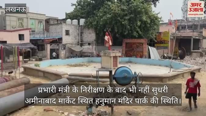 राजधानी लखनऊ में अमीनाबाद मार्केट स्थित हनुमान मंदिर पार्क की हालत खस्ता है। यहां मंदिर की दीवार सटाकर कूड़ा जाला गया है। ज्यादातर जगह में लोगों का अतिक्रमण है। हैंडपंप खराब पड़ा है। पार्क के अंदर अवैध पार्किंग बनाई गई है। प्रभारी मंत्री सुरेश खन्ना के निरीक्षण के बाद यहां हालात ठीक नहीं हुए।