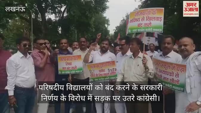 उत्तर प्रदेश में परिषदीय विद्यालयों को बंद करने के सरकार के निर्णय का लखनऊ में गुरुवार को कांग्रेस कार्यकर्ताओं ने विरोध किया। प्रदेश अध्यक्ष अजय राय के नेतृत्व में कार्यकर्ता परिवर्तन चौक चौराहे पर एकत्र हुए। यहां से जिलाधिकारी कार्यालय तक पैदल मार्च निकालकर नारेबाजी की।
