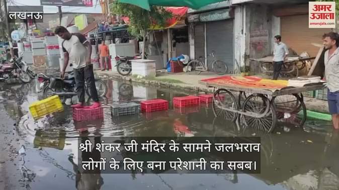 लखनऊ में सीतापुर रोड के ताड़ीखाना स्थित श्री शत्तकेश्वर बाधा हरण श्री शंकर जी मंदिर के सामने जलभराव लोगों के लिए परेशानी का सबब बना हुआ है। लोग सड़क पर भरे गंदे पानी में हिलकर निकलने को मजबूर हैं।