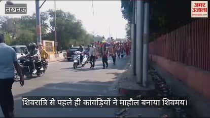 राजधानी लखनऊ में शिवरात्रि से पहले ही कांवड़ियों ने शिवमय माहौल बना दिया। औरैया के दिबियापुर से बाराबंकी के महादेवा जा रहे कांवड़ियों के जत्थे में हर महादेव का घोष गूंज रहा है।