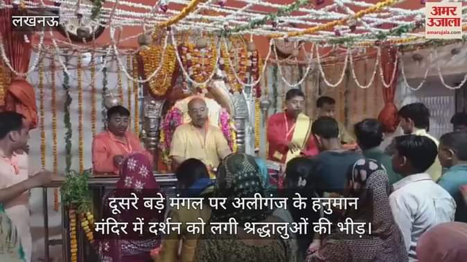 दूसरे बड़े मंगल पर अलीगंज के हनुमान मंदिर में दर्शन को लगी श्रद्धालुओं की भीड़