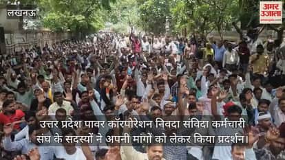 राजधानी लखनऊ में सोमवार को गोखले मार्ग स्थित मध्यांचल विद्युत वितरण निगम के कार्यालय पर अपनी मांगों को लेकर उत्तर प्रदेश पावर कॉरपोरेशन निवदा संविदा कर्मचारी संघ के सदस्यों ने प्रदर्शन किया।