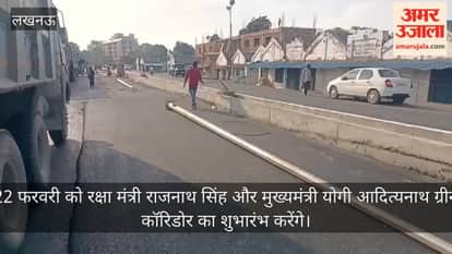 22 फरवरी को भारत के रक्षा मंत्री राजनाथ सिंह और मुख्यमंत्री योगी आदित्यनाथ ग्रीन कॉरिडोर का शुभारंभ करेंगे जिसका लाभ लखनऊ वासियों को मिलेगा और जाम से निजात भी मिलेगी इसकी तैयारी बहुत ही तेजी से चल रही है यह तस्वीर है बीरबल साहनी मार्ग की जहां पर सड़क बनाई जा रही है और लाइट लगाने का काम बहुत ही तेजी से हो रहा है और इन मार्गों पर डिवाइडर की भी पेंटिंग की जा रही है।