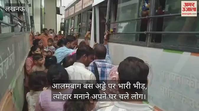 VIDEO: आलमबाग बस अड्डे पर भारी भीड़, त्योहार मनाने अपने घर चले लोग