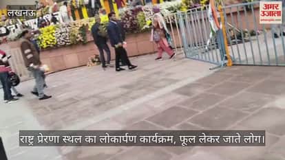 VIDEO: राष्ट्र प्रेरणा स्थल लोकार्पण कार्यक्रम के बाद मंच पर मची फूलों की लूट