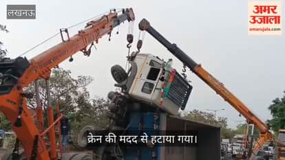 VIDEO: भूहर चौकी क्षेत्र में डंपर पलटा, क्रेन की मदद से हटाया गया