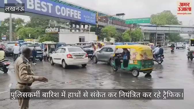 VIDEO: बंद पड़ी ट्रैफिक लाइट... पुलिसकर्मी बारिश में हाथों से संकेत कर नियंत्रित कर रहे ट्रैफिक