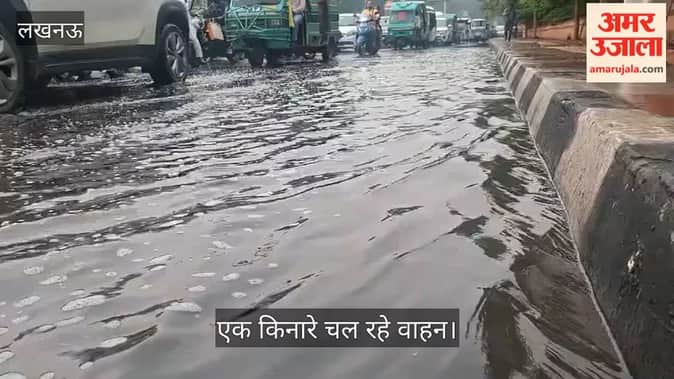 VIDEO: बुद्धा पार्क के पास सड़क किनारे भरा बरसात का पानी, एक किनारे चल रहे वाहन