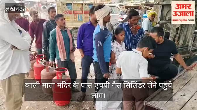 VIDEO: चिनहट स्थित काली माता मंदिर के पास एचपी गैस सिलिंडर लेने पहुंचे लोग