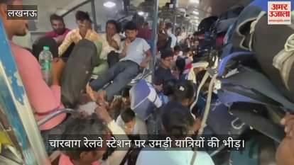 VIDEO: चारबाग रेलवे स्टेशन पर उमड़ी यात्रियों की भीड़, बोगी ठसाठस भरी होने से खिड़की से घुसे यात्री