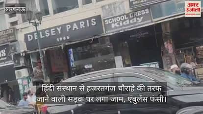 VIDEO: हिंदी संस्थान से हजरतगंज चौराहे की तरफ जाने वाली सड़क पर लगा जाम, एंबुलेंस फंसी