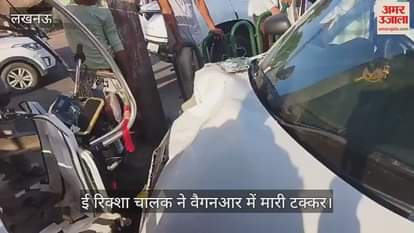 VIDEO : इंजीनियरिंग कॉलेज चौराहे पर ई रिक्शा चालक ने वैगनआर में मारी टक्कर