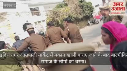 Video : इंदिरा नगर आम्रपाली मार्केट में मकान खाली कराए जाने के बाद बाल्मीकि समाज के लोगों का धरना
