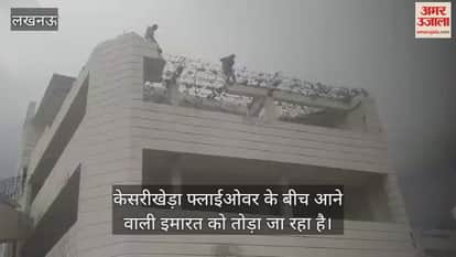 VIDEO: केसरीखेड़ा फ्लाईओवर के बीच आने वाली इमारत को तोड़ा जा रहा है