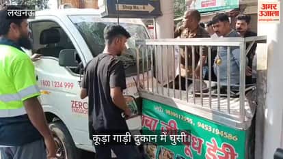 Video: कूड़ा गाड़ी दुकान में घुसी, लोग बोले- बाइक सामने आने से हुआ हादसा