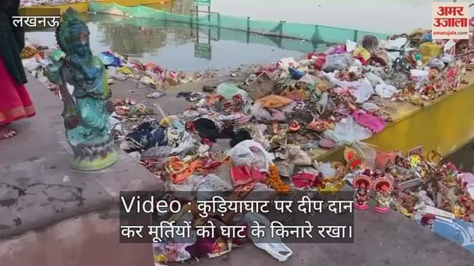 Video : कुड़ियाघाट पर दीप दान कर मूर्तियों को घाट के किनारे रखा