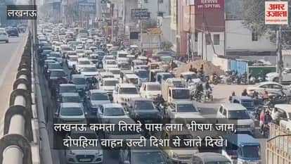 Video: लखनऊ कमता तिराहे पास लगा भीषण जाम, दोपहिया वाहन उल्टी दिशा से जाते दिखे