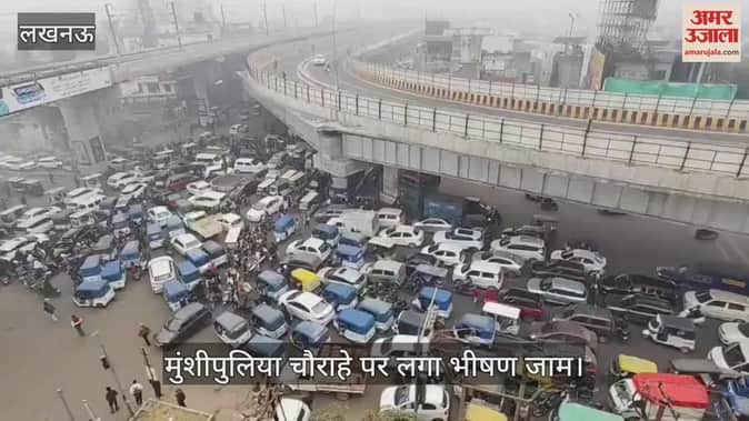 VIDEO: लखनऊ में मुंशीपुलिया चौराहे पर लगा भीषण जाम, घंटों रेंगते रहे वाहन