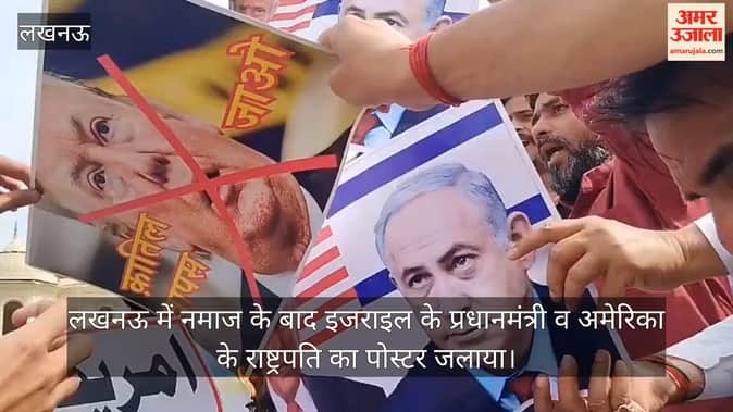 video: लखनऊ में नमाज के बाद इजराइल के प्रधानमंत्री व अमेरिका के राष्ट्रपति का पोस्टर जलाया