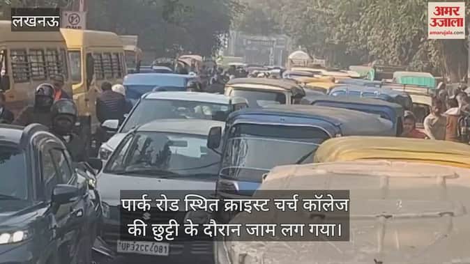 VIDEO: लखनऊ में पार्क रोड स्थित क्राइस्ट चर्च कॉलेज की छुट्टी के दौरान जाम लग गया