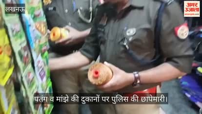 VIDEO: लखनऊ में पतंग व मांझे की दुकानों पर पुलिस की छापेमारी