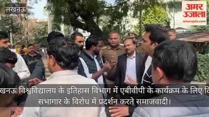 video: लखनऊ विश्वविद्यालय के इतिहास विभाग में एबीवीपी के कार्यक्रम के लिए दिए सभागार के विरोध में प्रदर्शन करते समाजवादी