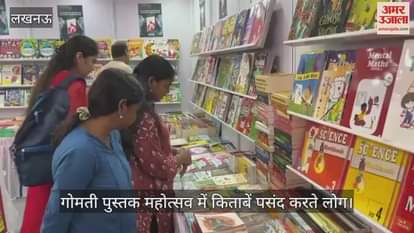 VIDEO: लखनऊ विश्वविद्यालय परिसर में आयोजित गोमती पुस्तक महोत्सव में किताबें पसंद करते लोग