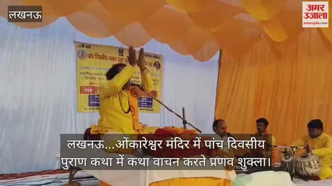 Video : लखनऊ...ओंकारेश्वर मंदिर में पांच दिवसीय पुराण कथा में कथा वाचन करते प्रणव शुक्ला