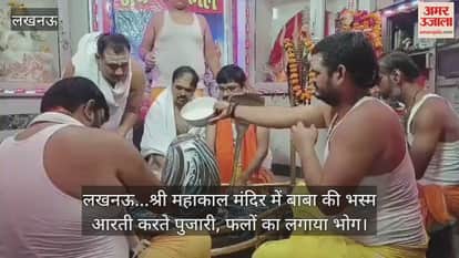 Video: लखनऊ...श्री महाकाल मंदिर में बाबा की भस्म आरती करते पुजारी, फलों का लगाया भोग