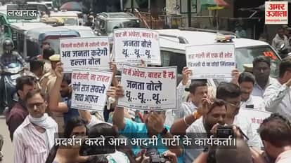 आम आदमी पार्टी के कार्यकर्ताओं ने लखनऊ के स्वास्थ्य भवन चौराहे पर बिजली कटौती और कानून व्यवस्था के मुद्दे पर सरकार पर नाकामी का आरोप लगाते हुए प्रदर्शन किया।