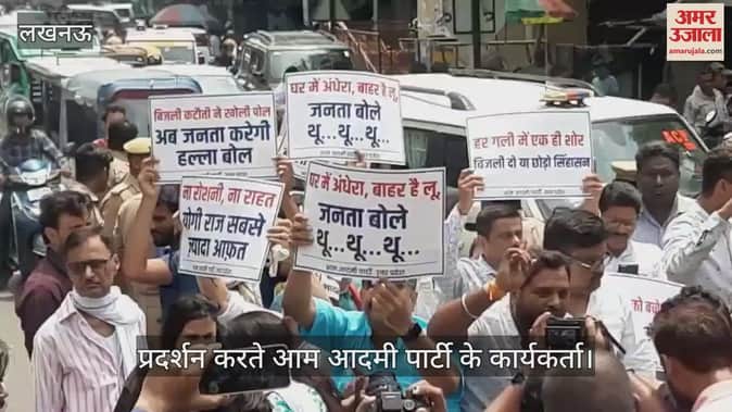 VIDEO: Lucknow: बिजली कटौती को लेकर सड़कों पर उतरे आप कार्यकर्ता, बोले- योगी सरकार नाकाम