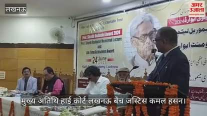 कैफ़े आज़मी शो में फातिमा एजुकेशनल एंड चैरिटेबल ट्रस्ट एंड सोसाइटी की ओर से आयोजित सम्मान समारोह में संबोधित करते मुख्य अतिथि हाई कोर्ट लखनऊ बेंच न्यायमूर्ति सैयद कमर हसन रिजवी।