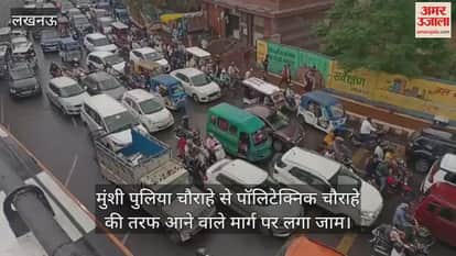 VIDEO: मुंशी पुलिया चौराहे से पॉलिटेक्निक चौराहे की तरफ आने वाले मार्ग पर लगा जाम