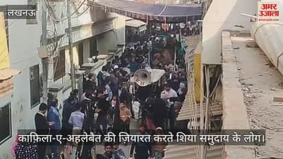 इमाम हुसैन के (28 रजब को) मदीना से कर्बला की ओर प्रस्थान किये जाने की याद में पुराने लखनऊ में इक़बाल नगर स्थित इमामबाड़ा सुग़रा से निकाले गए काफ़िला-ए-अहलेबैत की ज़ियारत करते शिया समुदाय के लोग।