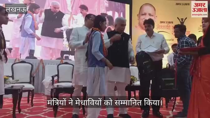 VIDEO: मेधावी छात्र सम्मान समारोह में यूपी सरकार के मंत्रियों ने मेधावियों को सम्मानित किया