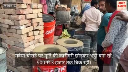 Video: मवैया चौराहे पर मूर्ति की कारीगरी छोड़कर भट्ठी बना रहे, 900 से 3 हजार तक बिक रही