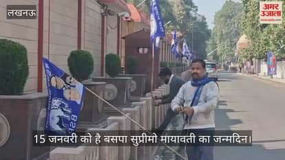 Video : मायावती के आवास से कार्यालय तक जगह-जगह 'बधाई संदेश' के होर्डिंग व बैनर लगाए गए