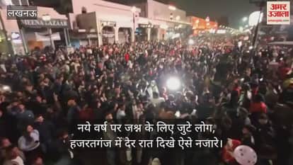 VIDEO: नये वर्ष पर जश्न के लिए जुटे लोग, हजरतगंज में देर रात दिखे ऐसे नजारे