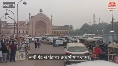 VIDEO: रूमी गेट से घंटाघर तक भीषण जाम... बड़ा इमामबाड़ा की तरफ से आ रहे वाहन फंसे