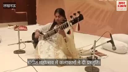 लखनऊ के निराला नगर स्थित एक होटल में पंडित अनोखे लाल मिश्रा कल्चरल सेंटर द्वारा नादा दर्पण संगीत महोत्सव में प्रस्तुति करते सितार पर वृंदा अग्नि और आरुष मिश्रा।