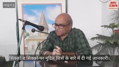 छतर मंजिल परिसर स्थित सभागार में उत्तर प्रदेश राज्य पुरातत्व निदेशालय लखनऊ द्वारा दो दिवसीय ग्रीष्मकालीन कार्यशाला में बोलते डॉक्टर प्रशांत श्रीवास्तव। कार्यशाला में सिक्के व सिक्कों पर मुद्रित चित्रों के बारे में मौजूद लोगों को बताया गया।