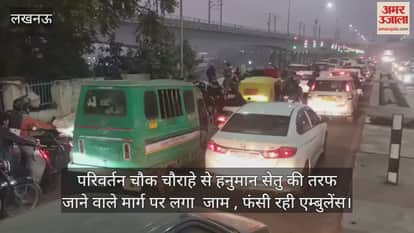 Video : परिवर्तन चौक चौराहे से हनुमान सेतु की तरफ जाने वाले मार्ग पर लगा जाम , फंसी रही एम्बुलेंस