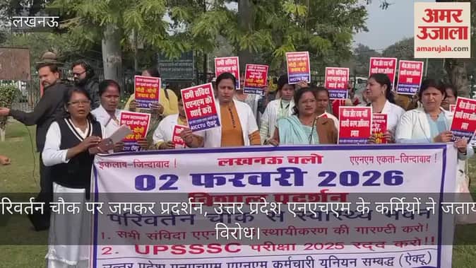 Video: परिवर्तन चौक पर जमकर प्रदर्शन, उत्तर प्रदेश एनएचएम के कर्मियों ने जताया विरोध