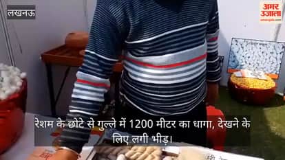 रेशम के छोटे से गुल्ले में 1200 मीटर का धागा। रेशम के रंगबिरंगे कीड़े देखने को लालायित देखे दर्शक। जन भवन में लगी प्रदर्शनी में कानपुर के रेशम स्टॉल पर लगी भीड़।